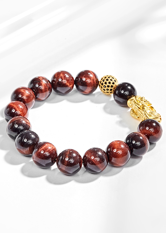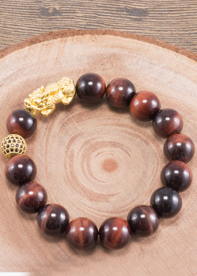 Vòng Tay Nam Đá Mắt Hổ Nâu Đỏ Phối Tỳ Hưu Bạc Mạ Vàng 24K Ngọc Quý Gemstones hợp với người mệnh Hoả và mệnh Thổ, mang đến nhiều may mắn và giúp người đeo chạm được đến với năng lượng của vũ trụ.