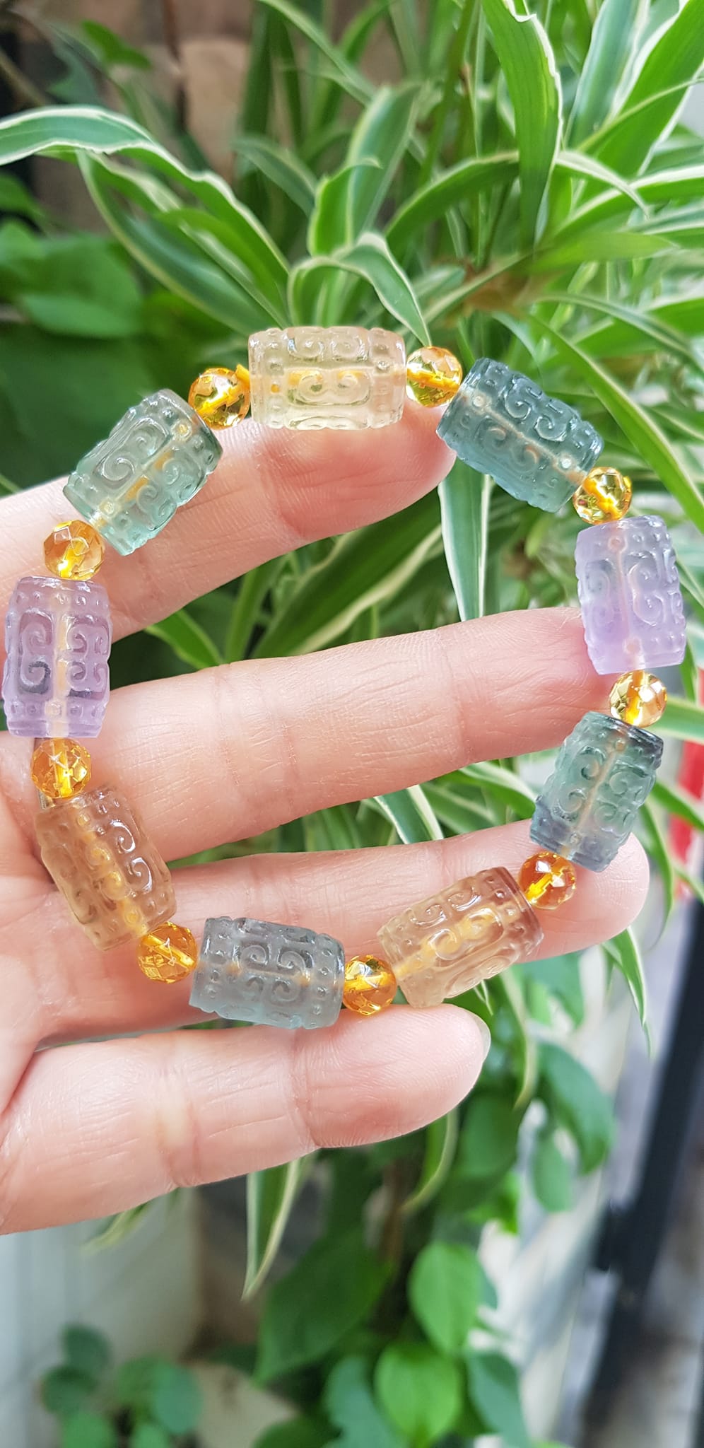 ✨Vòng Tay nữ charm cao cấp Đá Fluorit tự nhiên đa sắc màu kiểu hạt 10mm phối tròn đẹp sang các Chị đeo xinh tay may mắn tài lộc cả năm ạ