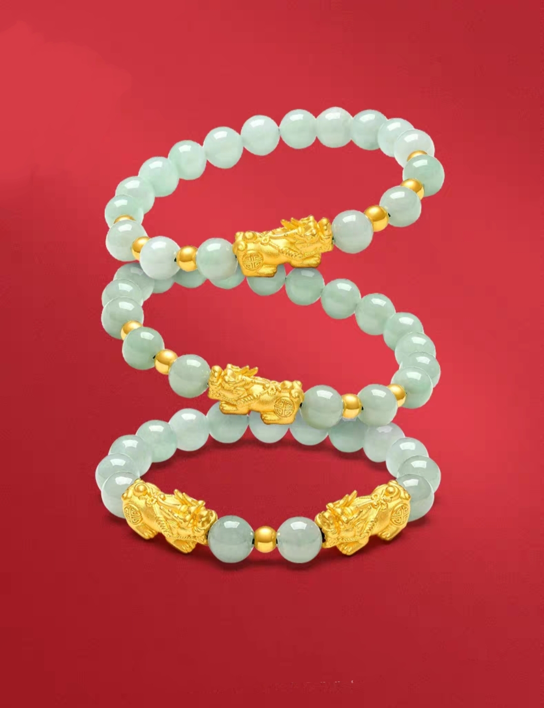 ✨Vòng tay nữ vòng tay may mắn đá cẩm thạch AAA 8mm gắn tỳ hưu hút Lộc Tài Duyên