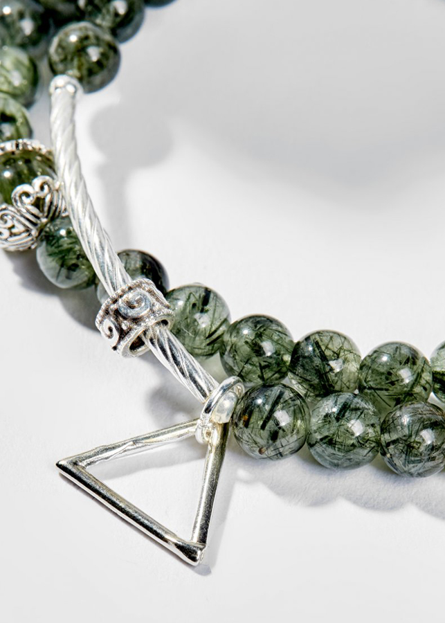 Vòng tay đá thạch anh tóc xanh phối charm bạc - Hợp mệnh mộc, hỏa | Ngọc Quý Gemstones |
