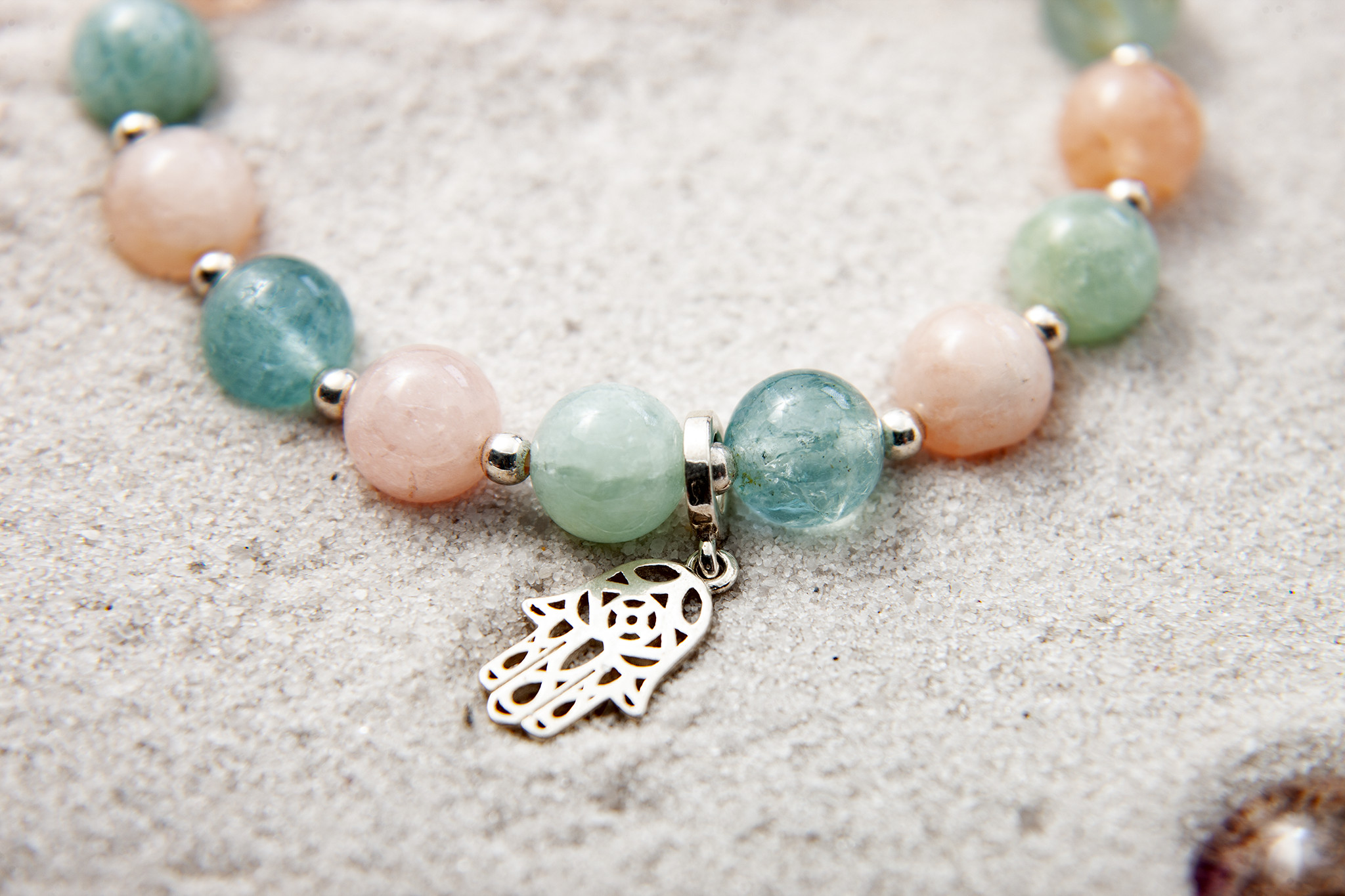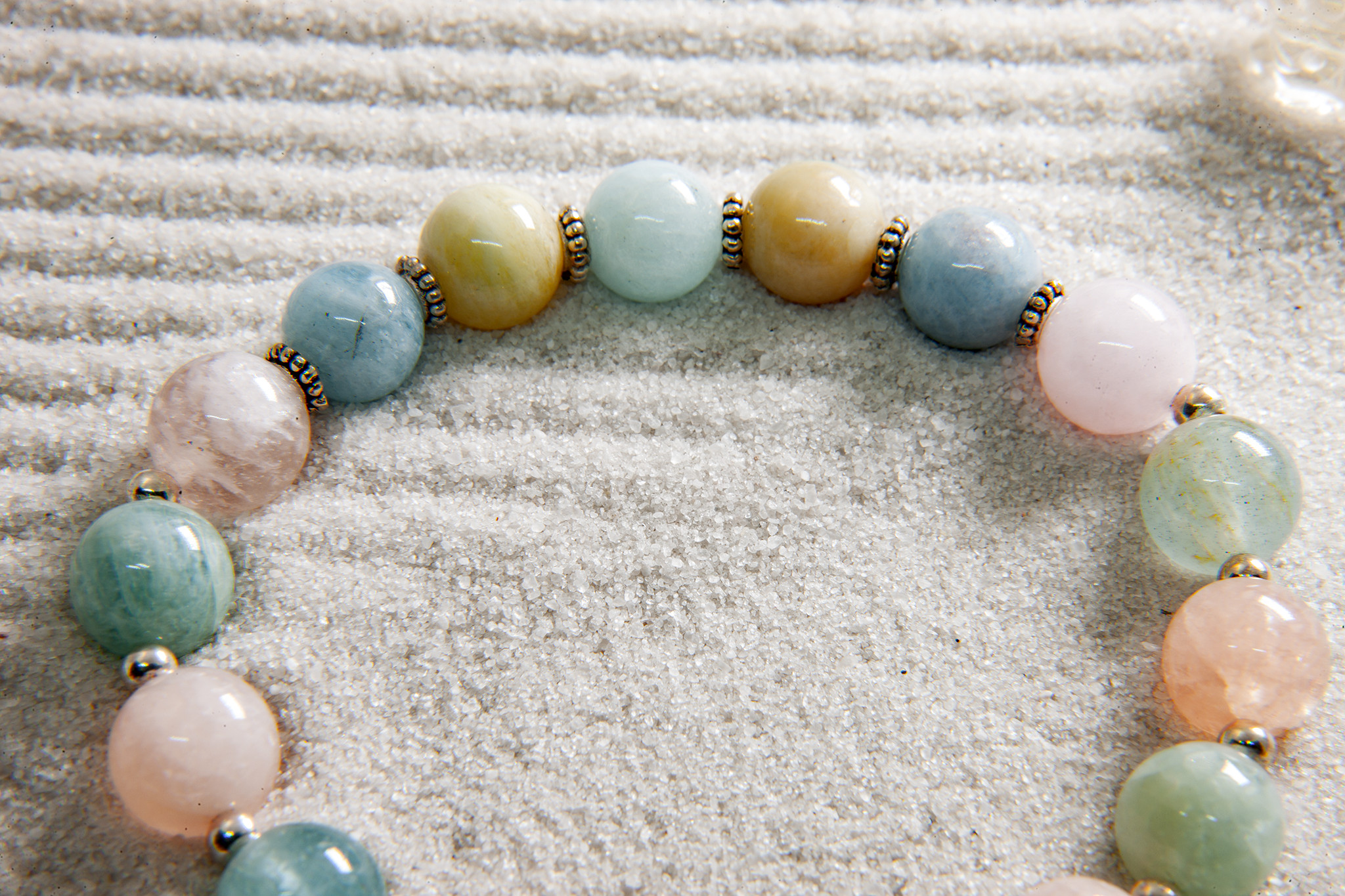 Vòng phong thủy #Blackmount đá Beryl đa sắc (pastel) mix charm bạc 925 #VT006