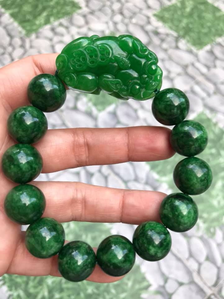 VÒNG TAY PHONG THỦY ĐÁ CẨM THẠCH XANH ĐẬM TỲ HƯU HÚT TÀI LỘC MAY MẮN VÒNG HỢP NAM MỆNH HỎA MỆNH MỘC ĐEO Ạ NAM TAY TO 75KG -90KG ĐEO MÀU XANH LÁ ĐẬM