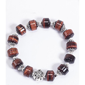 Vòng Tay Phong Thủy Đá Mắt Hổ Nâu Đỏ Phối Charm Kết Đồng Tâm (12mm) Mệnh Hỏa, Thổ