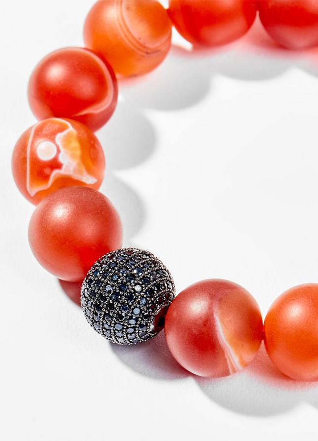 Vòng Tay Phong Thủy Nam Đá Mã Não Đỏ Nhám Phối Charm Cầu Đính Đá (14mm) Mệnh Hỏa, Thổ Từ lâu người ta đã biết đến đá Mã não như là tiếng gọi của thiên