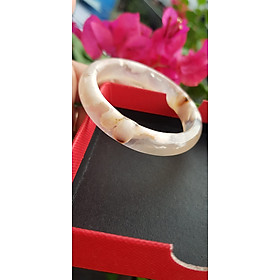 Vòng tay phong thuỷ Nữ Bản Hẹ Đá Mã Não trắng vàng nhẹ bông hoa bóng đẹp Vòng tay Nữ Ni 48mm x Cao 11mm x dầy 6mm Nữ tay nhỏ cân nặng 30kg -