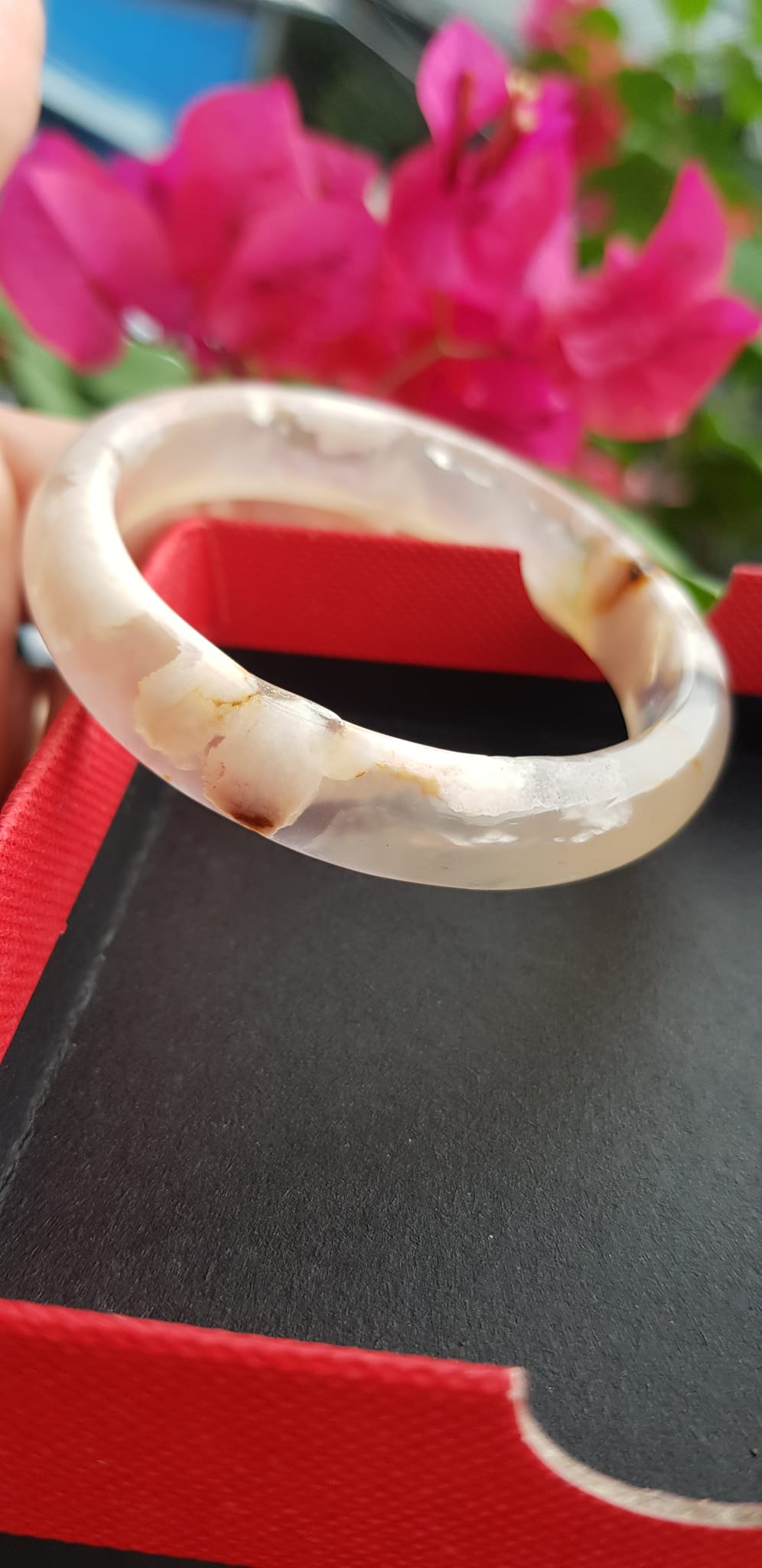 Vòng tay Nữ Bản Hẹ Mới Đá Mã Não Bông Tuyết Hồng nhẹ trắng trong bóng đẹp Ni 53mm 52kg-55kg SUNNY Q8