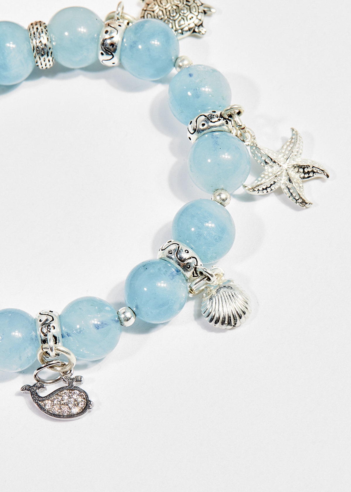 VÒNG TAY ĐÁ AQUAMARINE PHỐI CHARM BÁNH LÁI: Aquarmarine là một loại đá thuộc họ Beryl, sở hữu màu xanh tuyệt đẹp của biển cả, là món quà mà nàng tiên cá dành tặng cho