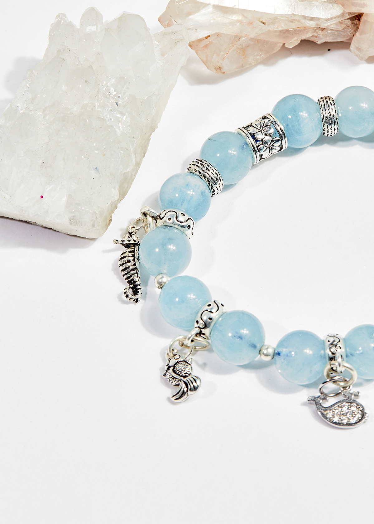 Vòng Tay Đá Thiên Nhiên Phối Charm Bạc - Chất liệu gia công từ đá thiên nhiên, không qua xử lý mang lại lợi ích cho sức khỏe, may mắn trong phong thủy cho người đeo. -