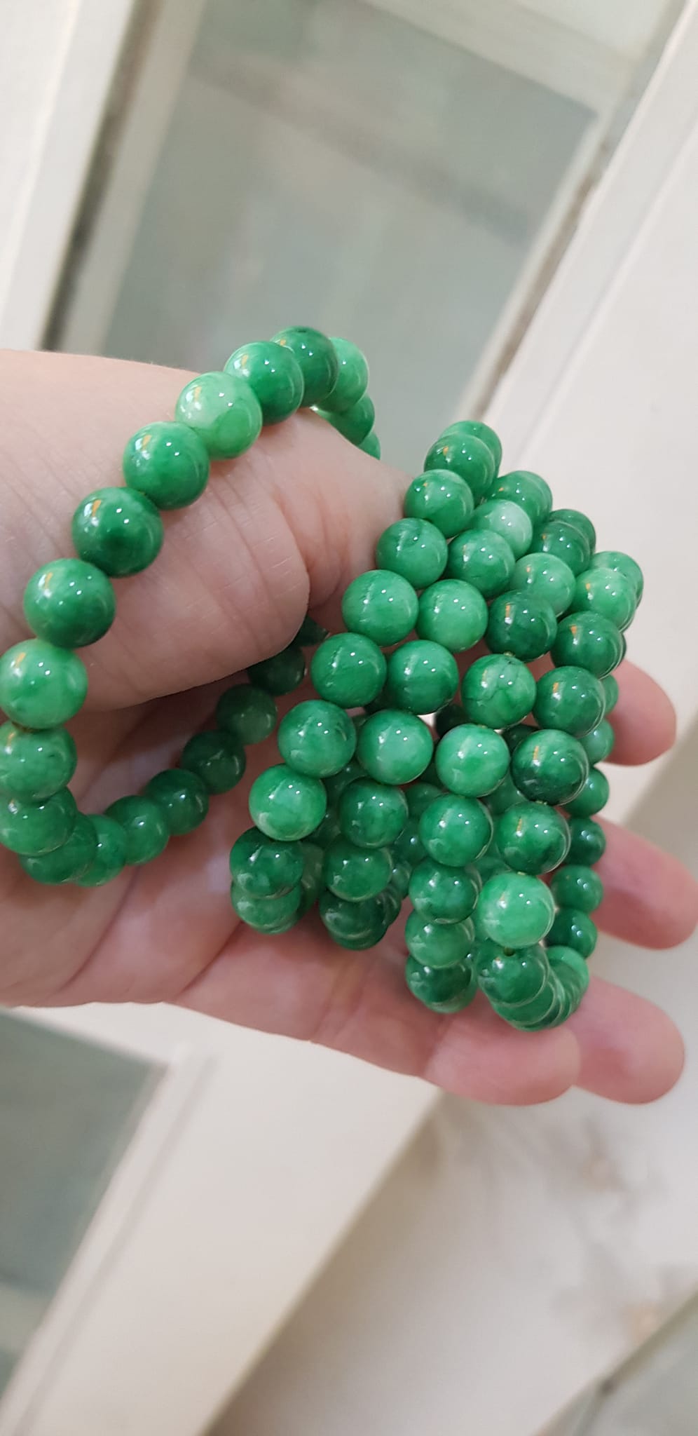 Vòng tay phong thủy đá cẩm thạch xanh tươi size hạt 8mm hay 8li màu xanh ngọc tươi trẻ đẹp