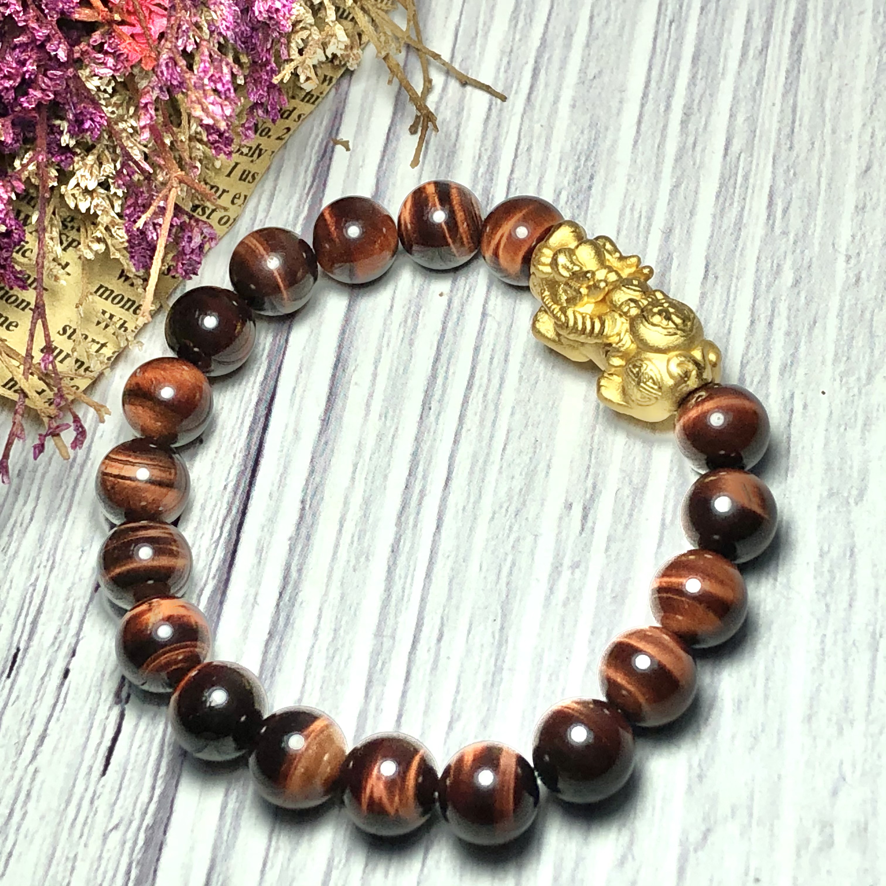 Vòng tay phong thủy đá mắt hổ nâu đỏ phối tỳ hưu - Hợp mệnh thổ, mệnh hỏa | Ngọc Quý Gemstones |