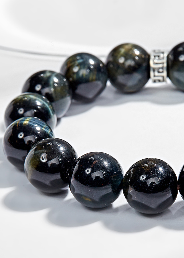 Vòng tay thạch anh mắt hổ xanh đen phối charm phật di lặc (12mm) - Đá mắt hổ là một biến thể thuộc nhóm đá thạch anh và rất bền, khó vỡ hơn những loại vòng