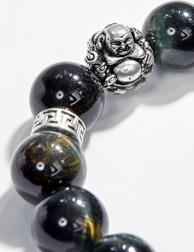 - Vòng tay thạch anh mắt hổ xanh đen phối charm phật di lặc (12mm) mang lại sự tự tin, dũng khí và giúp cho con người quyết đoán hơn trong công việc, đem đến sự thành công.