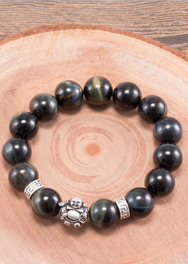 - Vòng tay thạch anh mắt hổ xanh đen phối charm phật di lặc (12mm) hợp với người mệnh Thuỷ và mệnh Mộc, mang đến nhiều may mắn và giúp người đeo chạm được đến với năng lượng của vũ trụ.