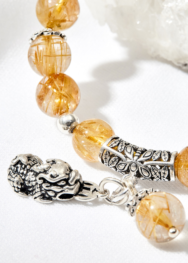 Vòng tay đá thạch anh tóc vàng phối charm bạc - Hợp mệnh kim, thủy | Ngọc Quý Gemstones |