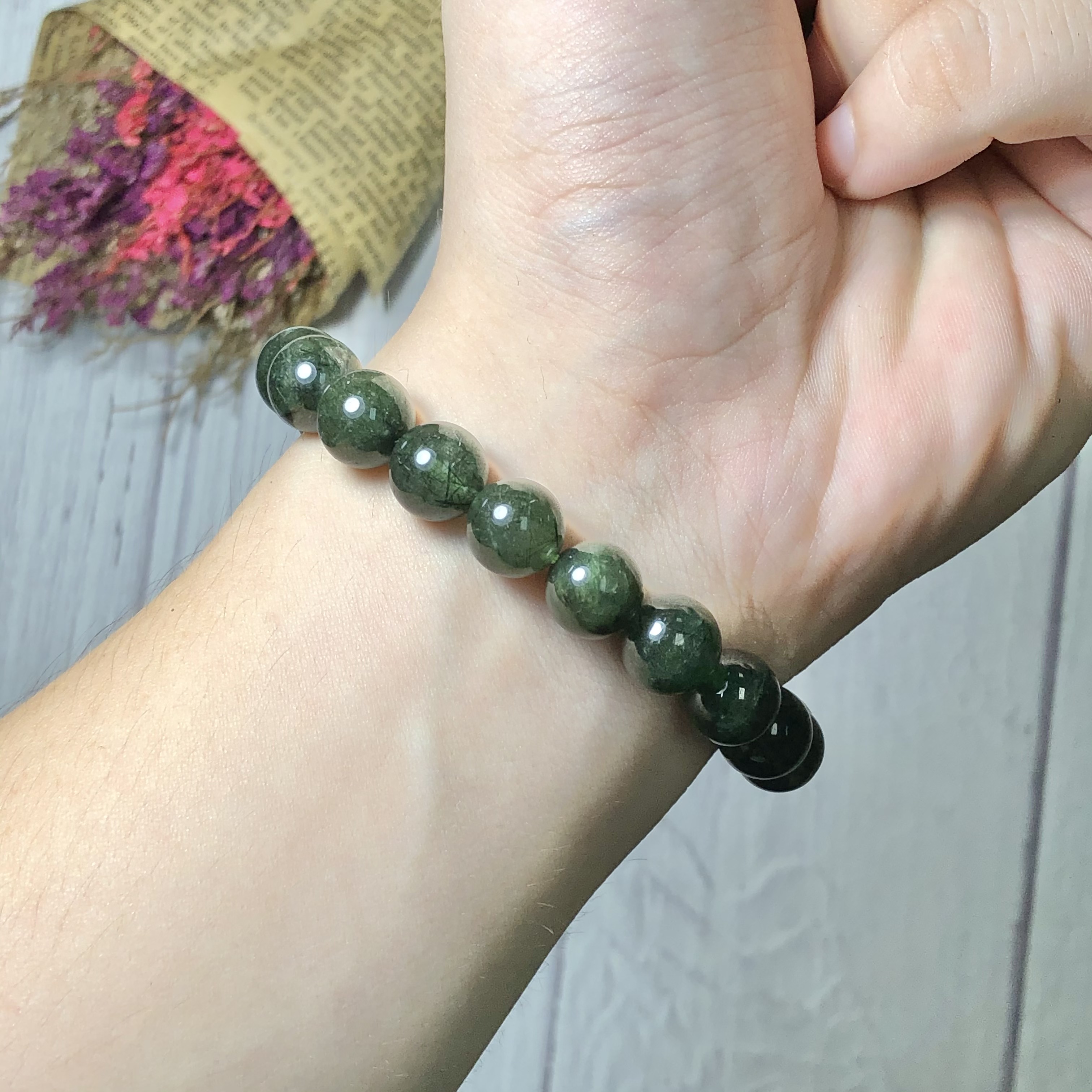 Vòng tay đá thạch anh tóc xanh 10li
