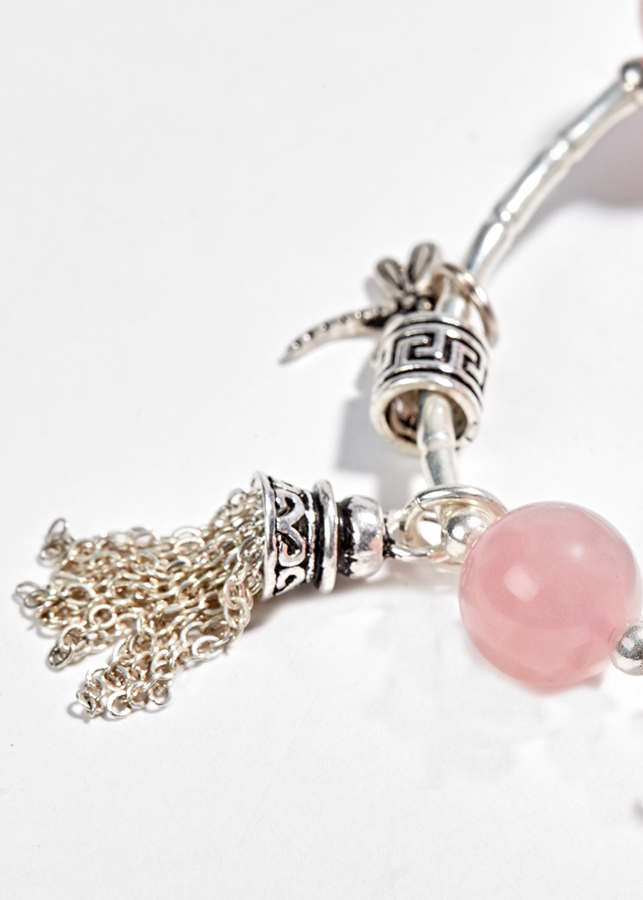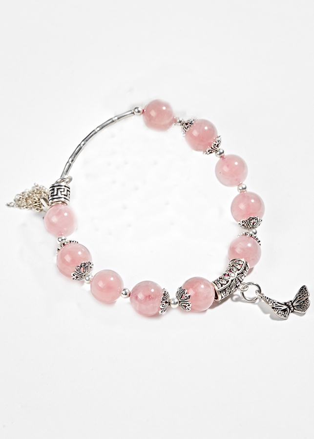 Vòng thạch anh hồng Aaa phối charm chuông bạc (8mm) Ngọc Quý Gemstones phù hợp với những người mạng Hoả và mạng Thổ.