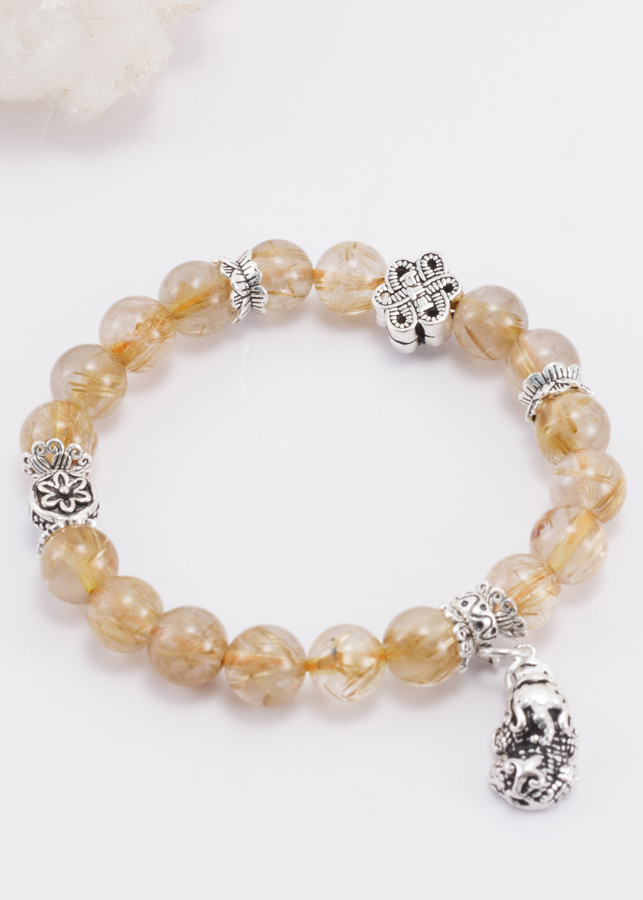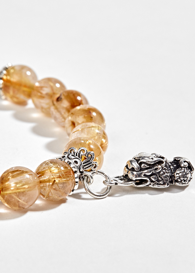 Đeo Vòng Thạch Anh Tóc Vàng Phối Charm Tỳ Hưu Treo (8mm) Ngọc Quý Gemstones giúp gia tăng khả năng tập trung trí óc, thúc đẩy hoạt động năng nổ, rất thích hợp với người làm việc kinh doanh, nghiên cứu khoa học và sáng tạo.