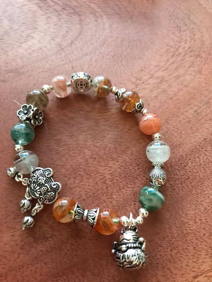 ✨VÒNG THẠCH ANH ƯU LINH PHỐI PHỤ KIỆN HÌNH MÈO MAY MẮN VÀ HOA ĐÍNH ĐÁ THIÊN NHIÊN (10MM)
