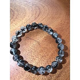 💦💦💦Vòng thạch anh tóc đen tự nhiên nữ size hạt 8mm màu đen trắng bóng đẹp hợp mệnh thủy Mộc SUNNY Q8