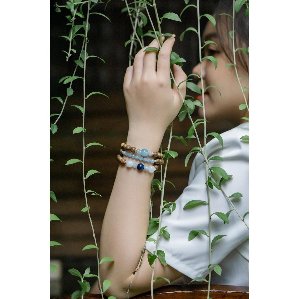 ✨Vòng trầm hương tự nhiên quấn 3 mix đá Aquamarine, mắt hổ xanh dương cao cấp chính hãng 2VTH031- UDUMBARA