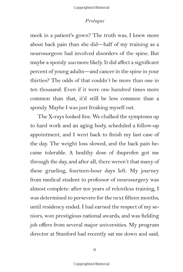 At the age of thirty-six, on the verge of completing a decade’s training as a neurosurgeon, Paul Kalanithi was diagnosed with inoperable lung cancer. One day he was a doctor treating the dying, the next he was a patient struggling to live.