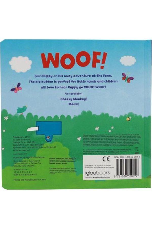 Woof! Sound Boardbook with BIG BUTTON for Little Hands. Puppy plays in the garden with Kitty and then plays in the park with all his other friends. Soon it’s time to go home, Good-bye, Little