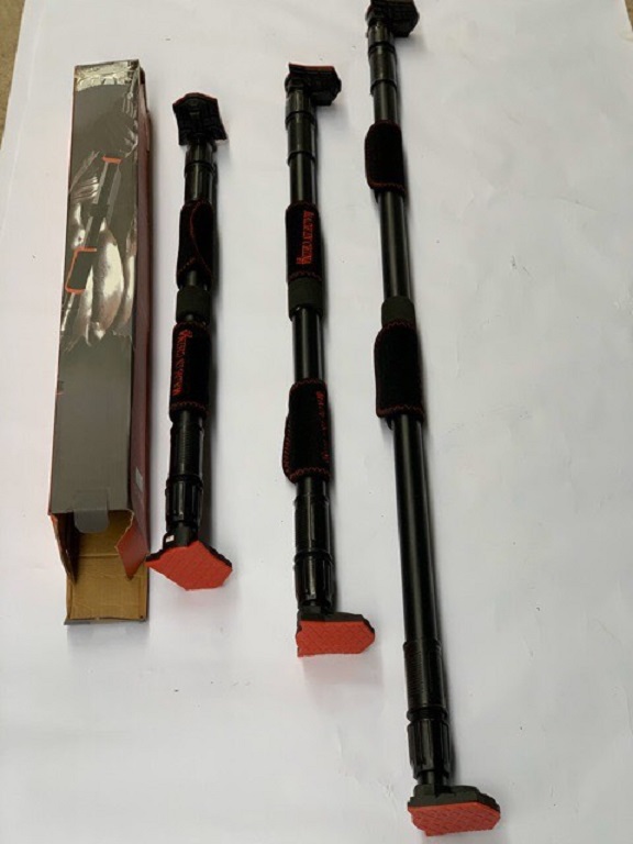 Mô Tả Sản Phẩm: Xà đơn gắn cửa cải tiến có chốt chống xoay (60cm-100cm)(82cm-130cm)(116cm-150cm) (Khách lựa chọn kích thước) Xà đơn có chốt chống xoay: Chiều dài : 62-100cm 82-130cm và 100-150cm Mẫu 62-100cm