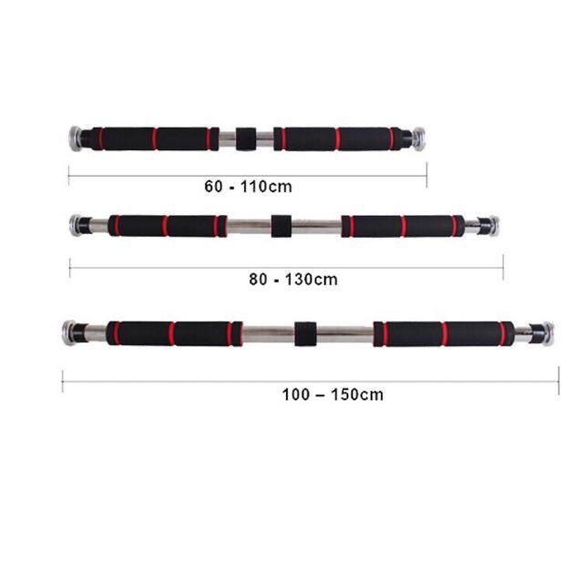Mô Tả Sản Phẩm 1.Các thông số kỹ thuật của xà đơn treo tường gắn cửa đen đỏ cao cấp. - Kích thước điều chỉnh: + 60cm-110cm-(Lắp cho chiều rộng từ 60cm-85cm). + 83cm-130cm-(Lắp cho