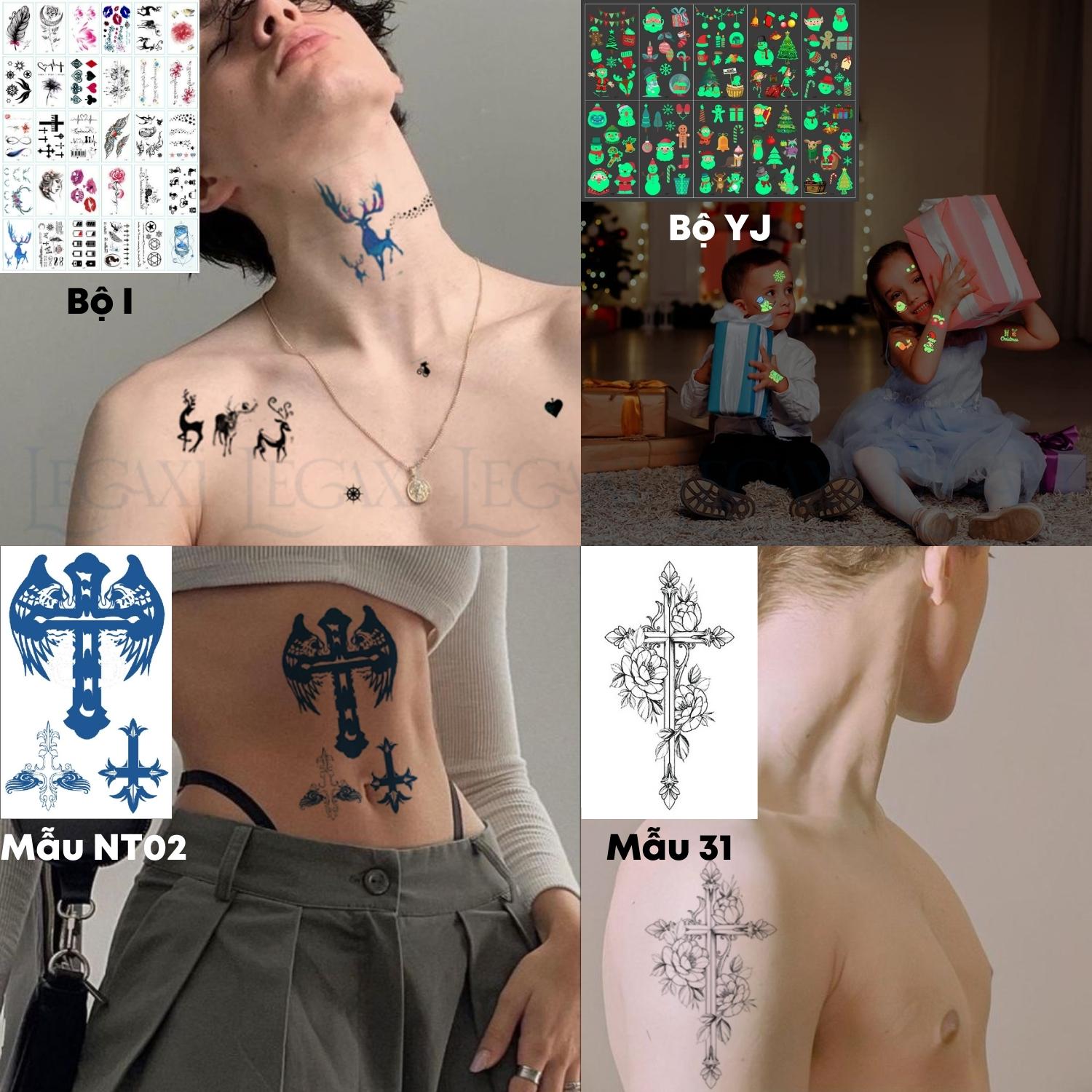 THÔNG TIN SẢN PHẨMCó các lựa chọn:- Bộ YS - 10 tờ xăm sáng (Mỗi bộ có 10 mẫu tương ứng với 10 tờ). Sẽ phát sáng trong bóng tối, lưu trên da 1-2 ngày, có thể chùi rửa.Kích thước (1 tờ): Dài 12cm Rộn...