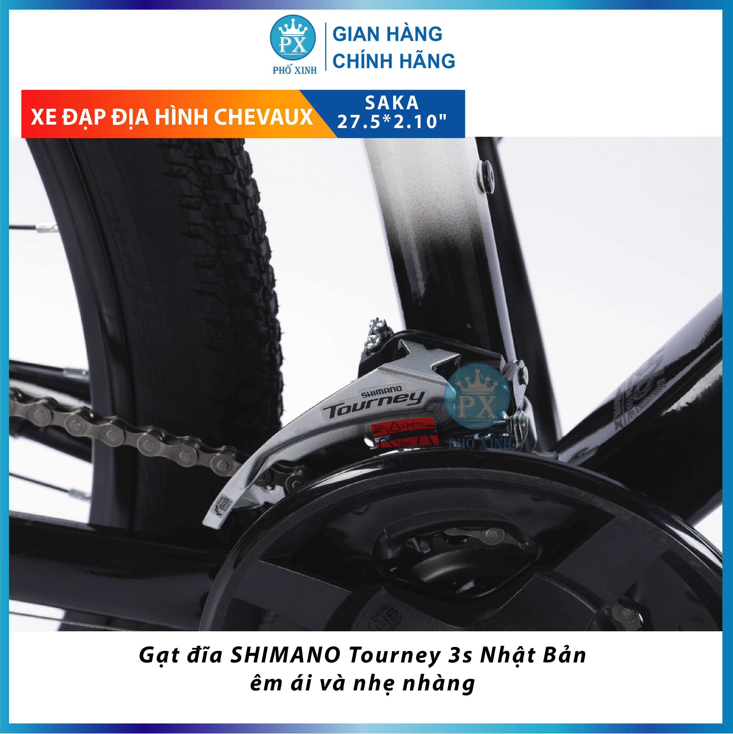 Xe đạp Chevaux Saka là mẫu xe địa hình băng đồng với nước sơn tĩnh điện cao cấp và theo phong cách ombre đầy ấn tượng, cá tính. Đây là một “ngựa chiến” hoàn hảo cho những ai muốn bước chân vào thế giới của những cung đường hoang dã, và cần một chiếc xe leo núi thực thụ với mức giá hợp lý.