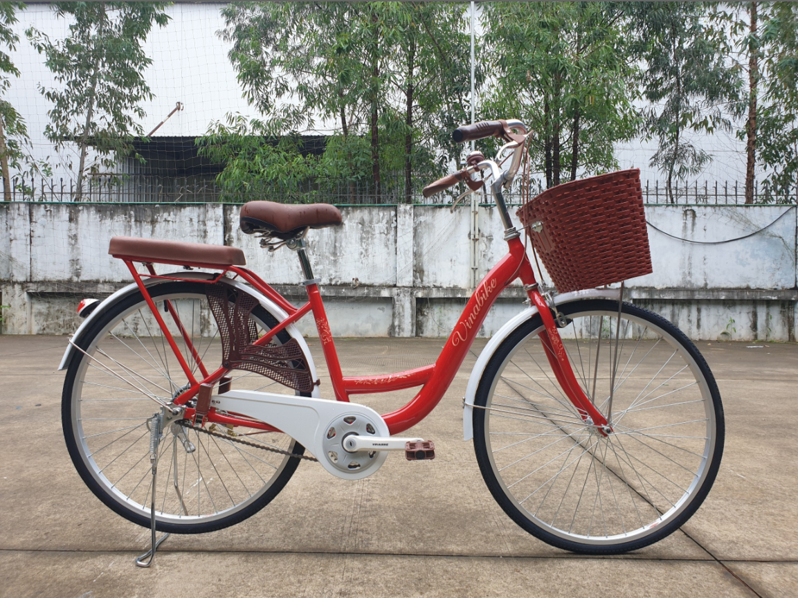 THÔNG TIN CHI TIẾT Khung : thép Bánh xe : kích thước 24 inch Vành : thép Nan hoa : 36 Giỏ xe thiết kế cổ điển : chất liệu nhựa PVC, kích thước 27