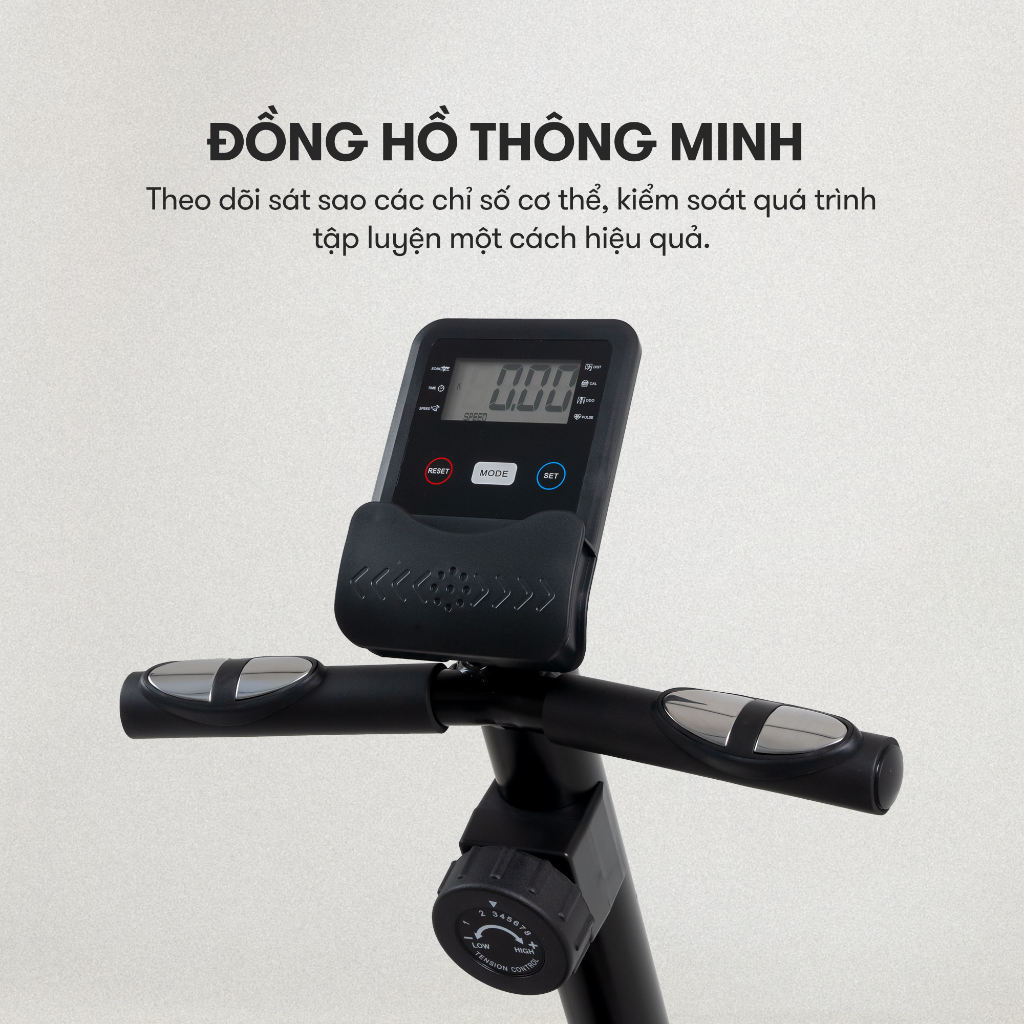Trọng lượng tối đa người sử dụng: 125kg Cốt thanh tay cầm và yên xe bằng crom Màn hình LED hiển thị trực quan, dễ dàng quan sát Trang bị giá đựng chai nước và