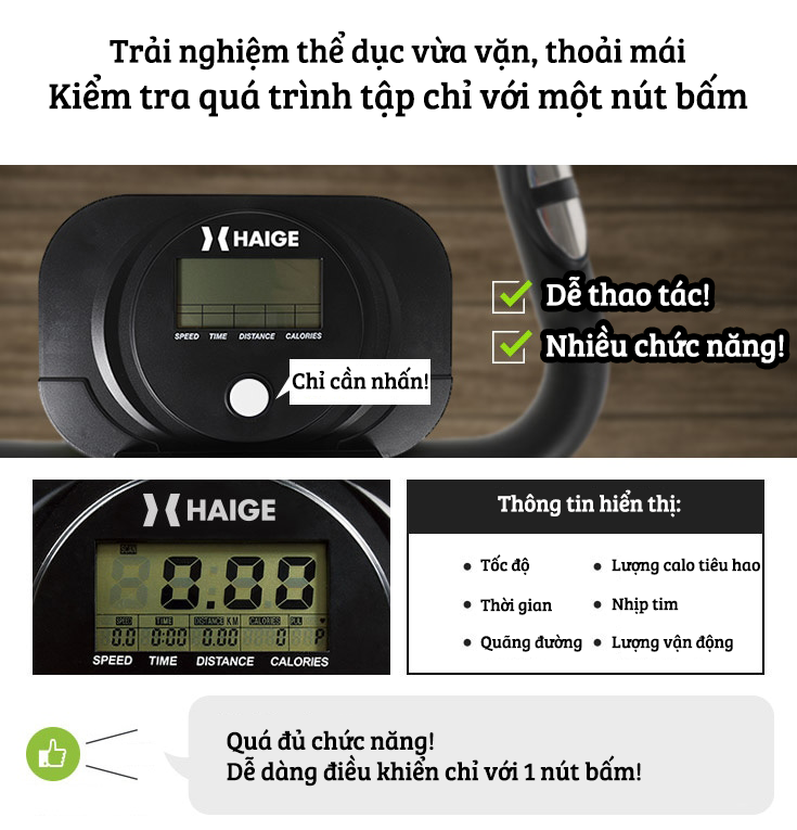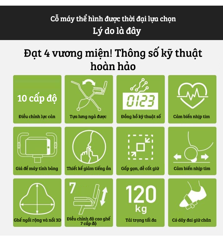 * THÔNG TIN CỦA SẢN PHẨM: Màu sắc: Xám Kích thước sản phẩm: 110 x 85 x 45cm Trọng lượng sản phẩm: 16 kg Có đồng hồ cảm ứng nhịp tim * PHÂN LOẠI: