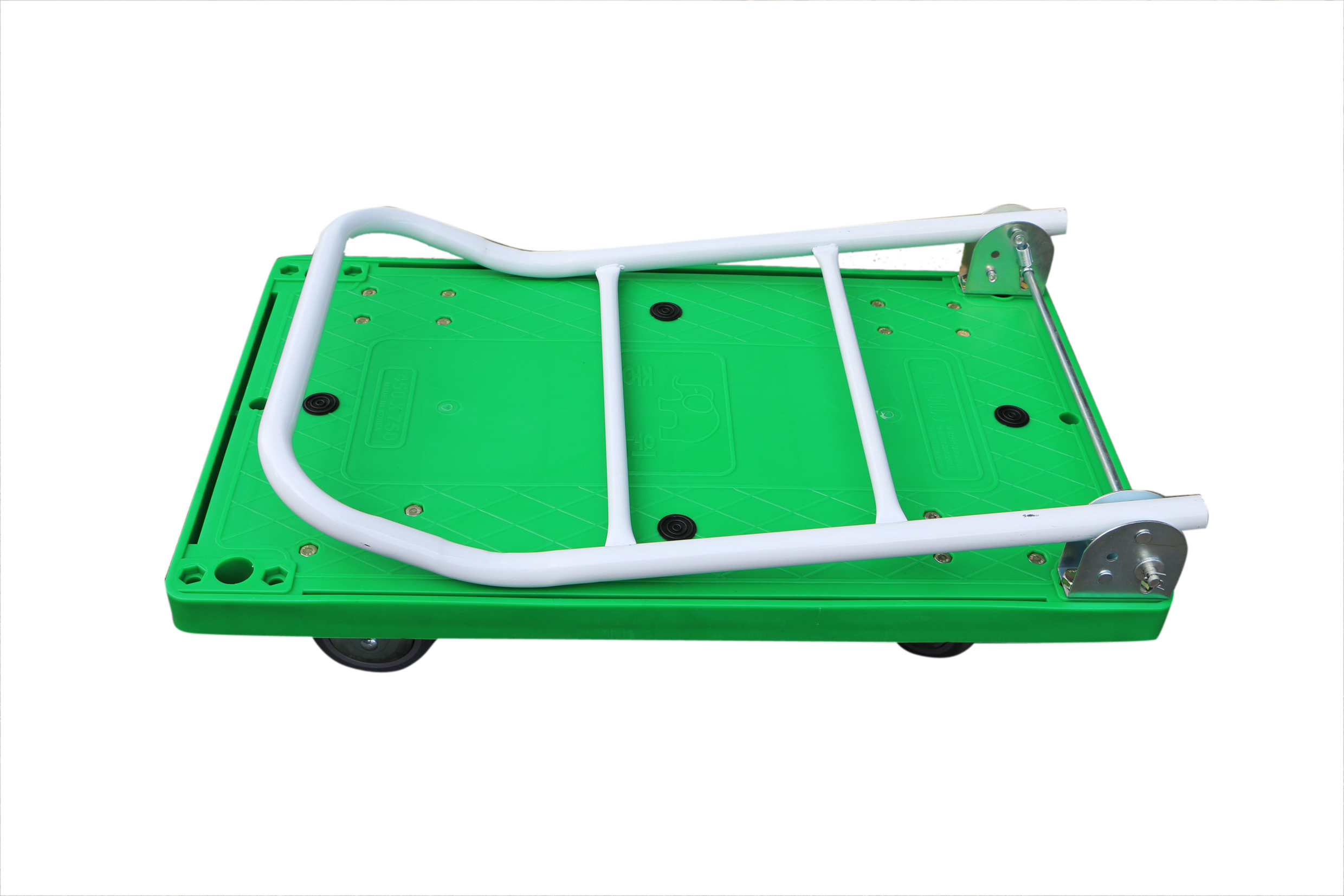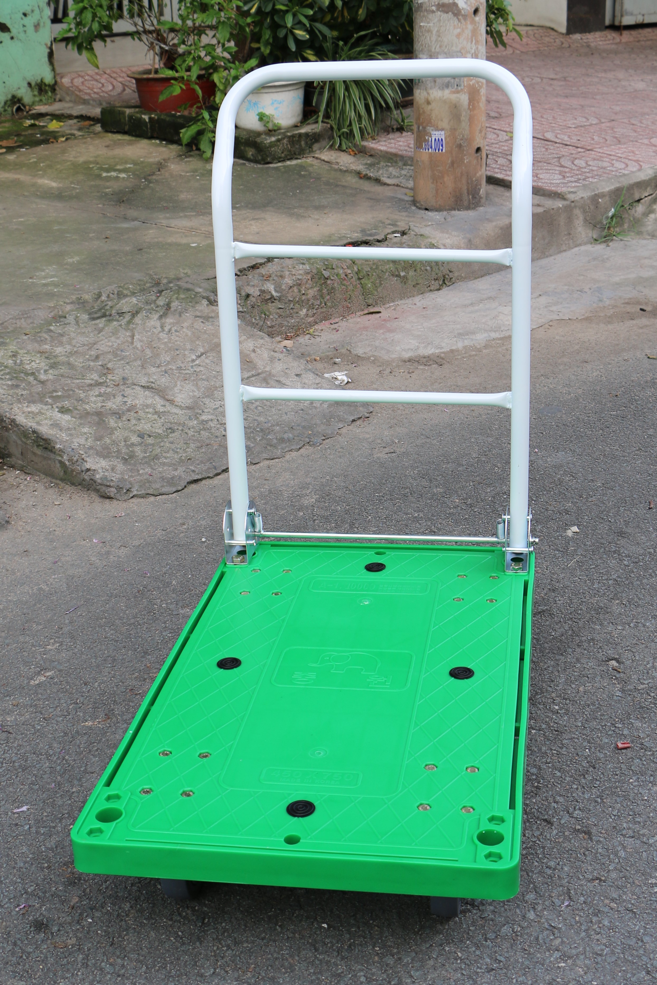 Xe được ứng dụng để chở hàng hóa, chở tiền Kiểu xe: xe đẩy sàn nhựa gấp gọn Kích thước : 600 x 900 x 860mm Đường kính bánh xe: 125mm Tải trọng: 300kg Trọng