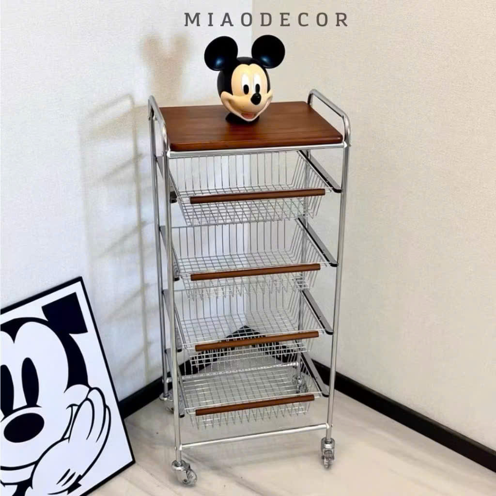 ✨Xe Đẩy Kệ Để Đồ Đa Năng Nhiều Ngăn Tầng Có Ván Gỗ Retro Vintage – Khung Kim Loại Chắc Chắn, Kệ Trang Trí Nhà Bếp Phòng Khách - HÀNG CHÍNH HÃNG MINIIN