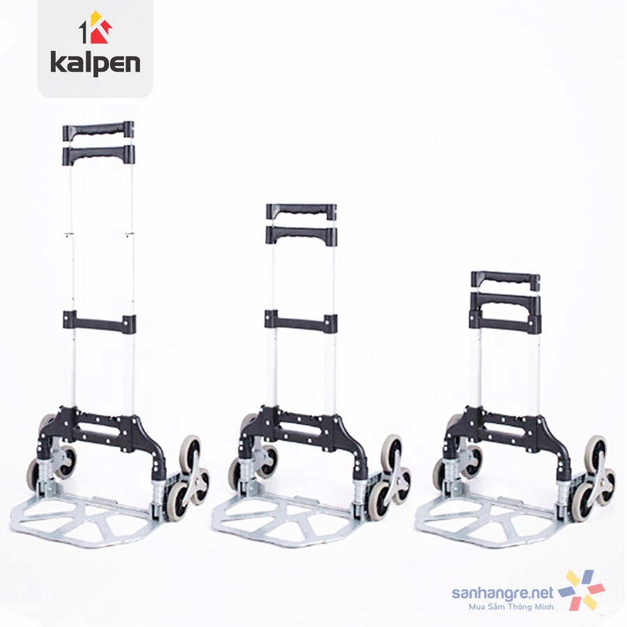 - Thiết kế thông minh với 6 bán xe quay tròn giúp việc vận chuyển hàng hóa lên xuống cầu thanh một cách dễ dàng. - Xe vận hành một cách êm ái khi di chuyển với bán xe được làm từ nhựa TPR (cao su nhiệt dẻo). - Tay cầm của xe kéo có khả năng thay đổi chiều cao thành 3 nấc khác là 60-90-106cm mang đến cho người dùng 1 trải nghiệm thật tuyệt. - Khi không sử dụng, xe có thể được gập lại, sắp xếp và cất giữ gọn gàng ở góc nhà hoặc tủ đồ. Xe kéo cầu thang Kalpen là gì? - Xe kéo hàng cầu thang hay còn gọi là xe đẩy hàng leo cầu thang. Loại xe chở hàng này được sử dụng 2 bộ xoay bánh xe liên kết với nhau, mỗi bộ phận gồm có 3 bánh nhỏ, không những di chuyển trên bề mặt phẳng mà sản phẩm còn có thể di chuyển trên những bậc thang hay lề đường một cách dễ dàng.