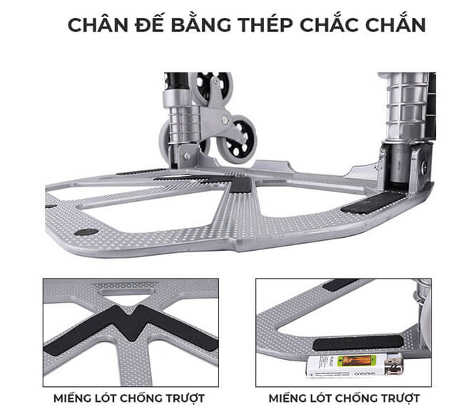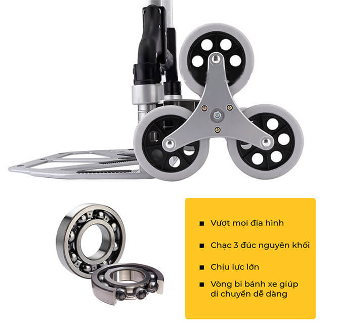- Xe kéo hàng cầu thang thông minh với 6 bánh xe có thể hoạt động tốt với bất kể địa hình nào như: nơi có bề mặt gồ ghề nhiều vật cản, hay đường dốc, và được sử dụng phổ biến đổi với cầu thang, bậc thềm tam cấp. Ngoài ra, xe kéo có trọng lượng siêu nhẹ, phụ nữ hay người cao tuổi đều có thể sử dụng để di chuyển đồ vật lên các tầng tại nhà vô cùng dễ dàng. 2.Thiết kế thông minh đảm bảo an toàn tuyệt đối