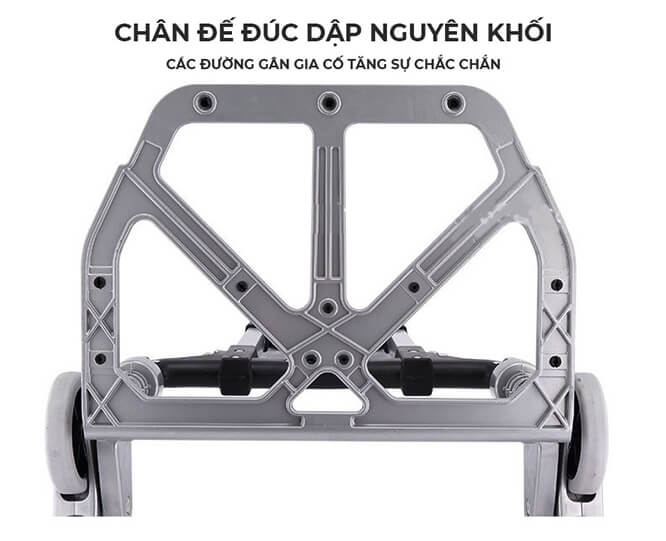 - Đối với những người thời xuyên mắc các bệnh về xương khớp luôn phải vận chuyển những đồ vật nặng thì đây có thể xem là một giải pháp vô cùng hiệu quả. Xe kéo hàng cầu thang thông minh sẽ giúp bạn hạn chế các cơn đau, đỡ tốn công sức khi bê vác và có tác động lực lên xương khớp cũng như cột sống. 4.Có độ bền cao - chịu lực tốt
