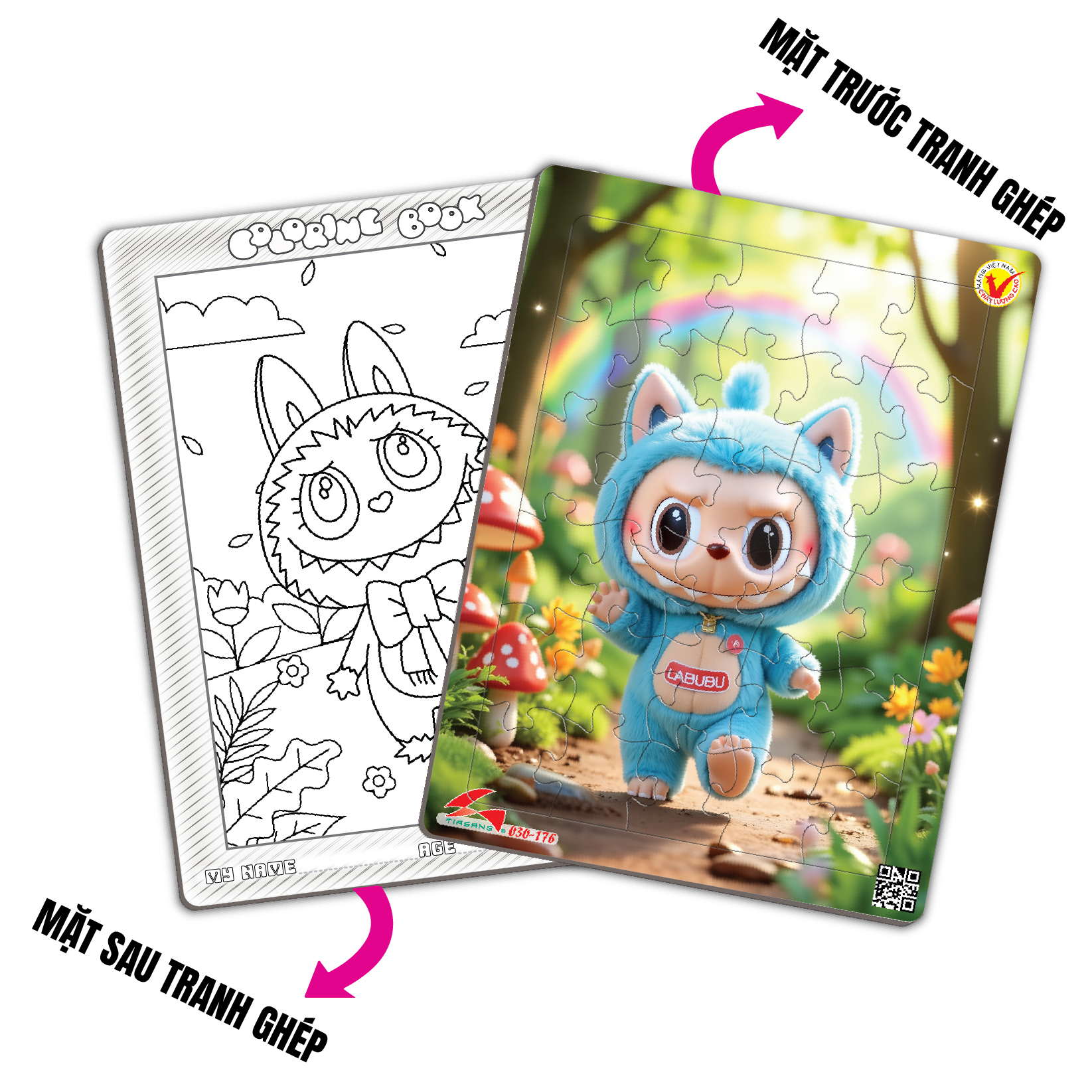✨Xếp hình A4 -30 mảnh ghép Tia Sáng: 030-176 - Labubu trong rừng thẳm tặng tranh tô màu