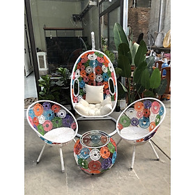 Bộ sản phẩm gồm : + chân xích đu, cần xích đu + lồng xích đu + Bộ nệm gối cao cấp in họa tiết như hình ảnh mô tả