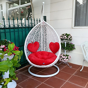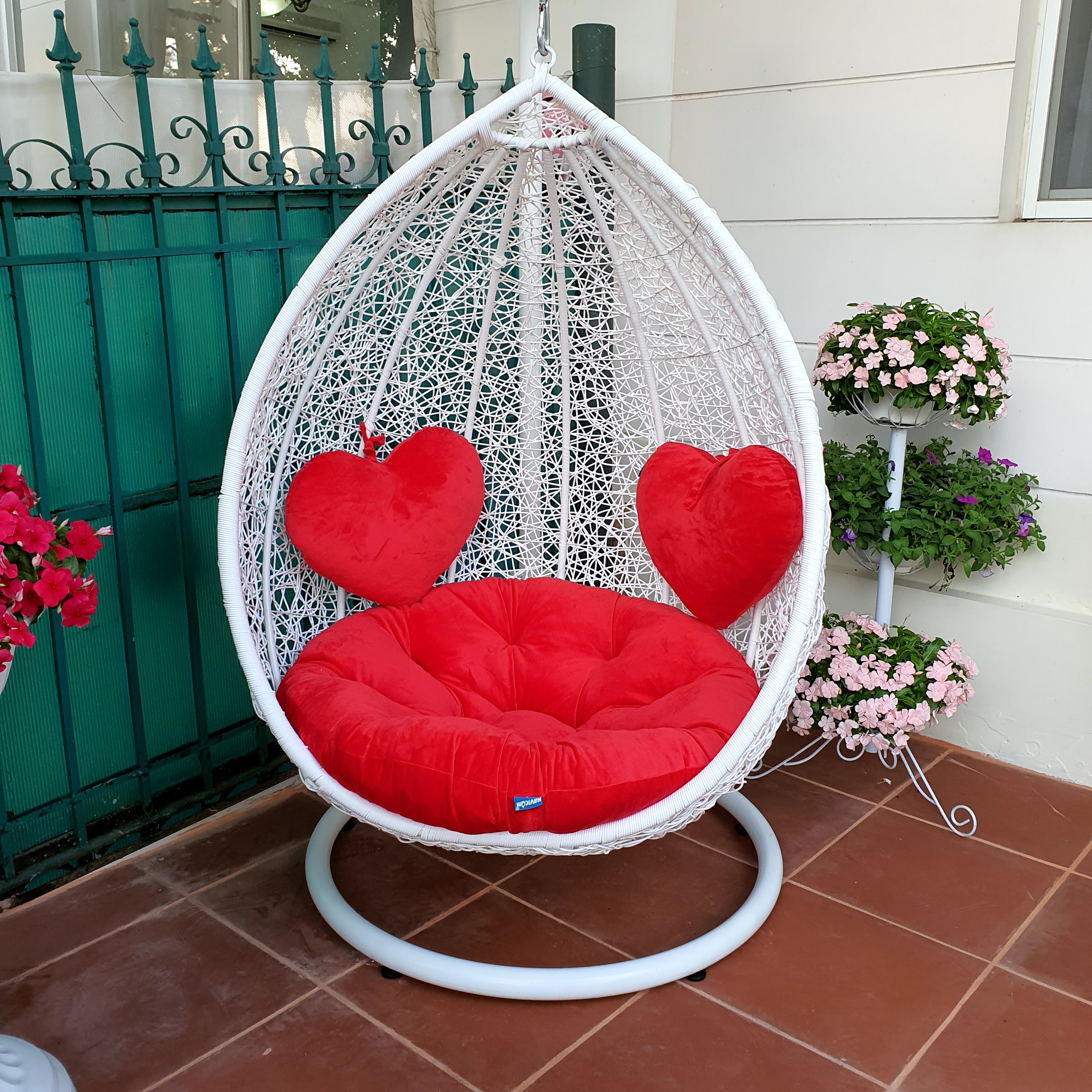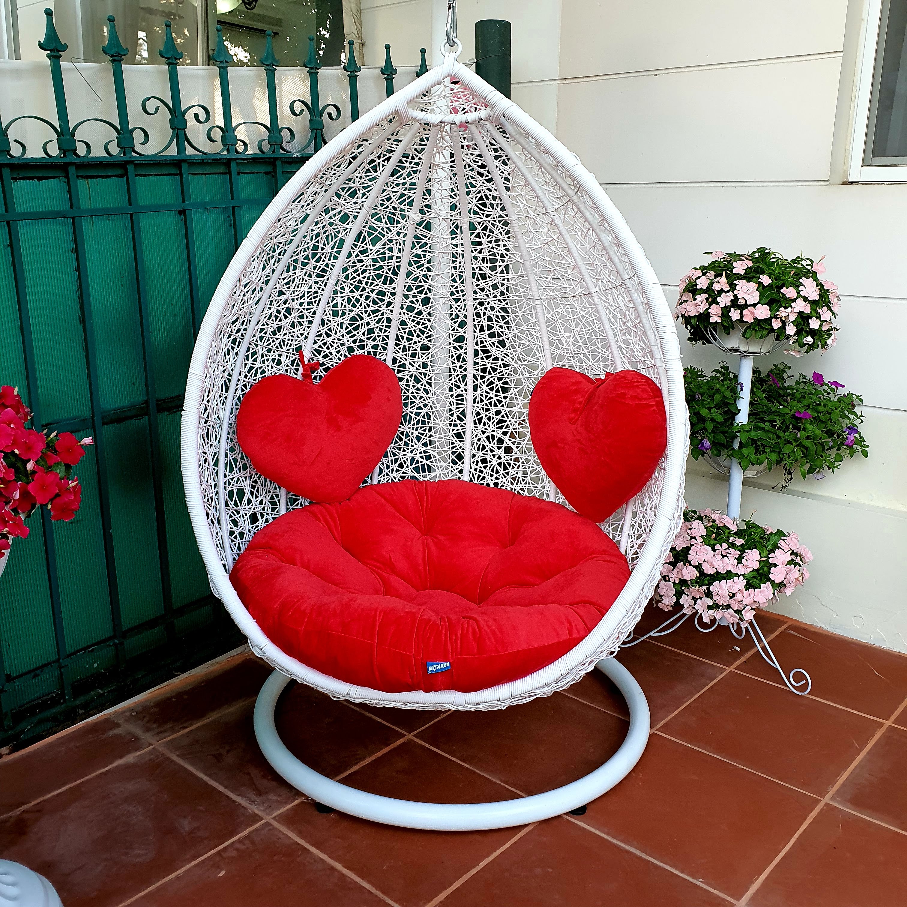 Bộ sản phẩm xích đu gồm : 1 xích đu + 1 nệm và 2 gối trái tim màu sắc như hình Tính thẩm mỹ được khẳng định rõ nét trong không gian ngôi nhà