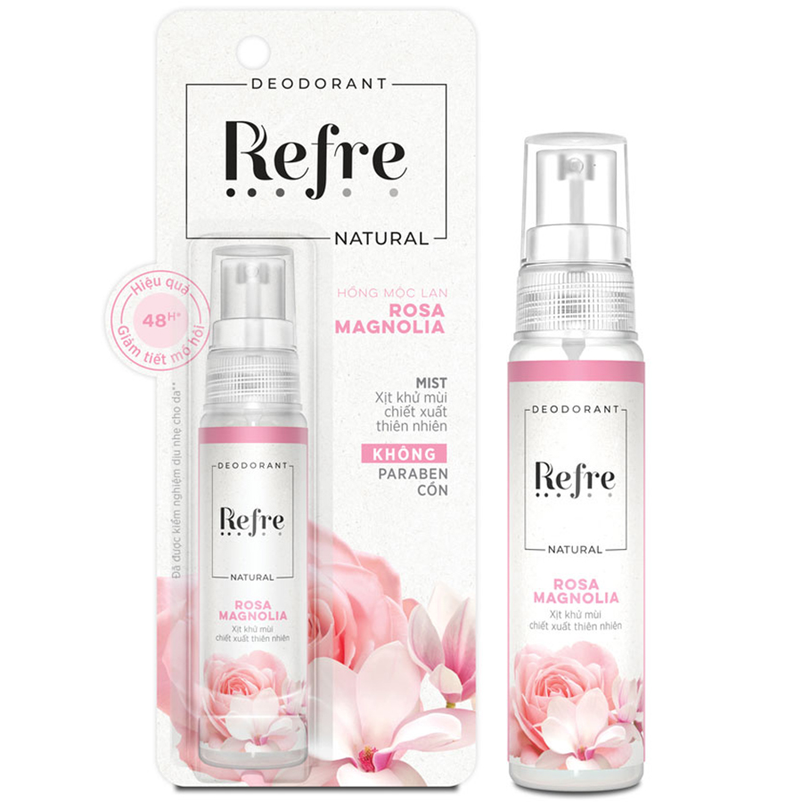✨Xịt khử mùi chiết xuất thiên nhiên Refre Natural Rosa Magnolia Hồng Mộc Lan 30ml