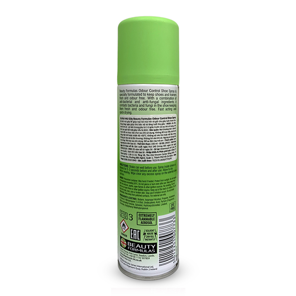 Xịt Khử Mùi Giày Beauty Formulas 150ml giúp loại bỏ mùi hôi và giữ cho giày luôn thơm tho.