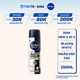 ✨Xịt Ngăn Mùi NIVEA MEN Black & White Ngăn Vệt Ố Vàng Vượt Trội 5in1 (150ml) - 85388