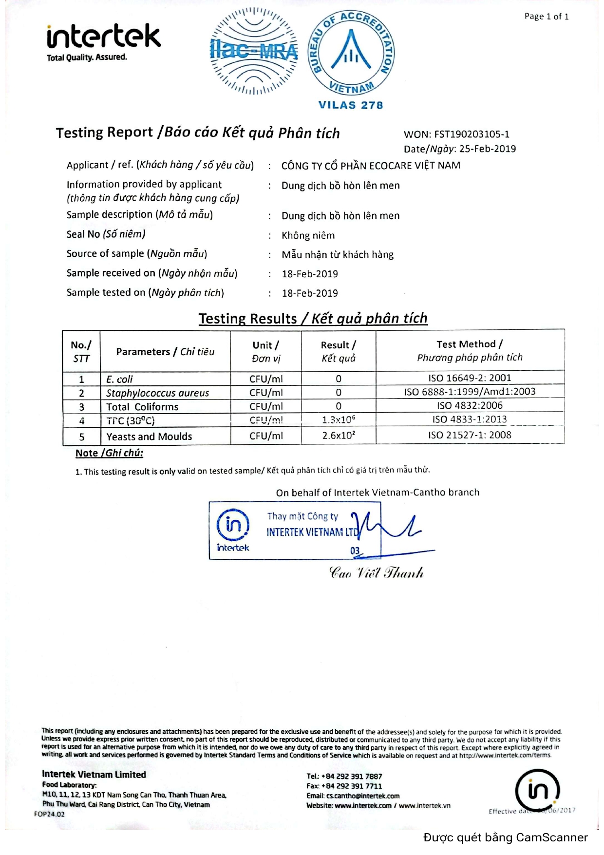 Giấy chứng nhận của cơ quan kiểm định Intertek thuộc Vương Quốc Anh, giấy chứng nhận Trung tâm Kỹ thuật Tiêu chuẩn Đo lường Chất lượng 1 (QUATEST 1)