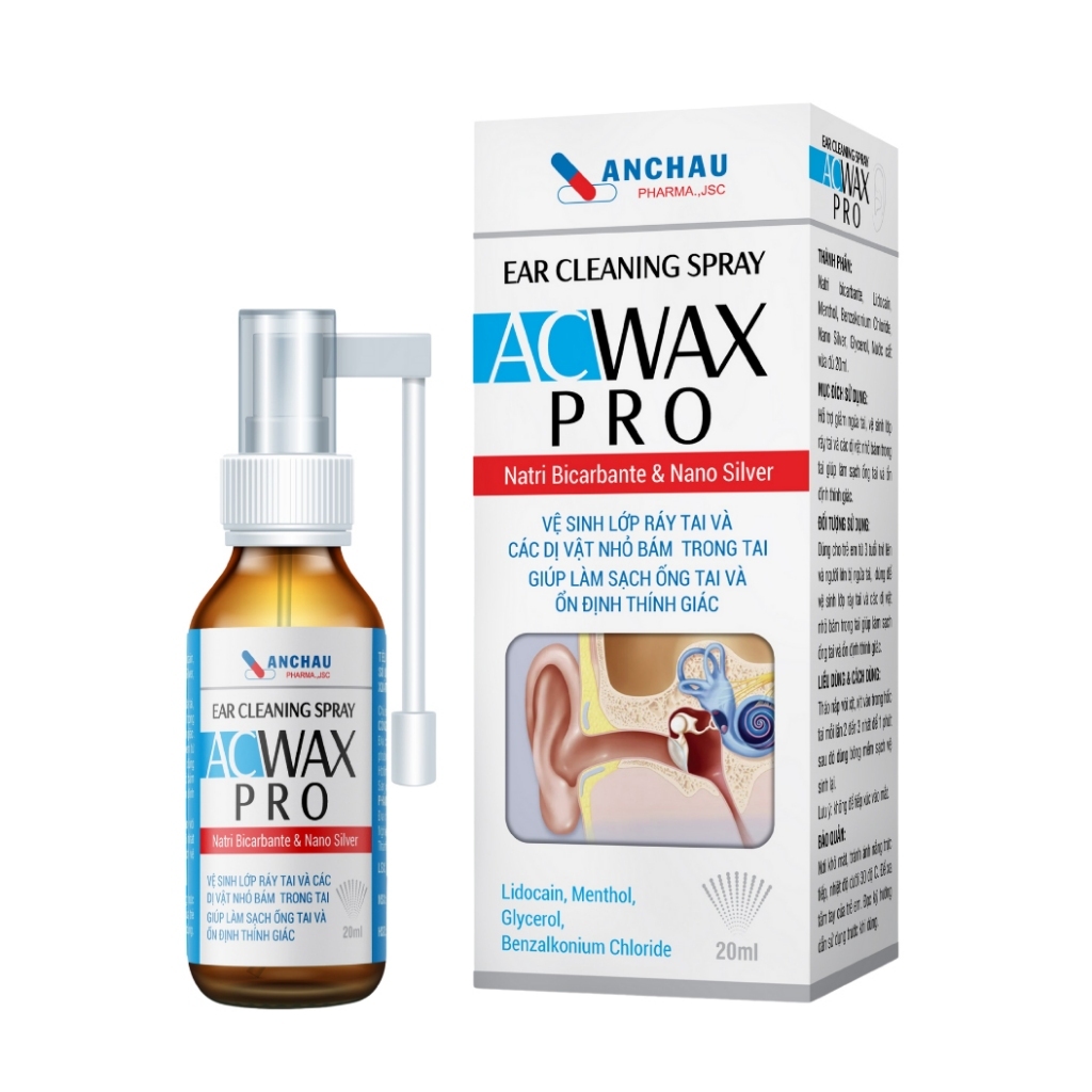 Mua tại TiktokXỊT RỬA TAI ACWAX PRO CHO TRẺ EM VÀ NGƯỜI LỚN Xịt rửa tai Acwax Pro là sản phẩm an toàn và hiệu quả cho việc làm sạch tai của trẻ em từ 3 tuổi trở lên và người lớn. Sản phẩm giúp vệ sinh lớp ráy tai và loại bỏ các dị vật nhỏ có thể bám trong tai, từ đó giúp duy trì sạch sẽ và ổn định thính giác. Thành phần chính của xịt rửa tai Acwax Pro An Châu bao gồm Natri bicarbonate và Glycerine, giúp làm mềm ráy tai để dễ dàng loại bỏ. Sự kết hợp với Nano bạc và Methol cung cấp công dụng làm sạch mạnh mẽ, đồng thời giúp giảm ngứa tai hiệu quả. Với chỉ một thao tác xịt đơn giản, sau đó đợi trong vòng 1 phút và lau sạch bằng bông mềm, bạn đã có thể loại bỏ lớp ráy tai và các dị vật nhỏ trong tai mà không gây tổn thương cho màng nhĩ. Đây thực sự là một giải pháp tiện lợi và an toàn cho việc vệ sinh tai hàng ngày. CÔNG DỤNG
