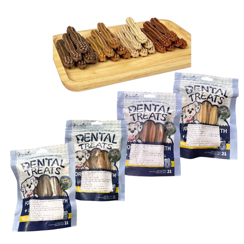 Review Xương gặm sạch răng cho chó, đồ ăn vặt cho thú cưng 3 vị, một gói 90gram