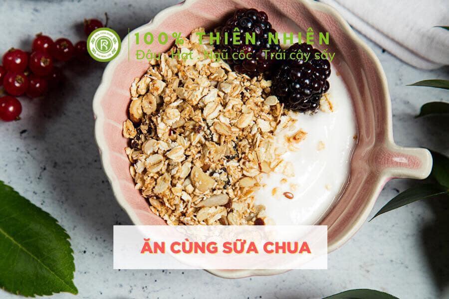 - Làm món tráng miệng, ngũ cốc ăn kèm sữa chua, sữa tươi trang trí thêm hoa quả trái cây.