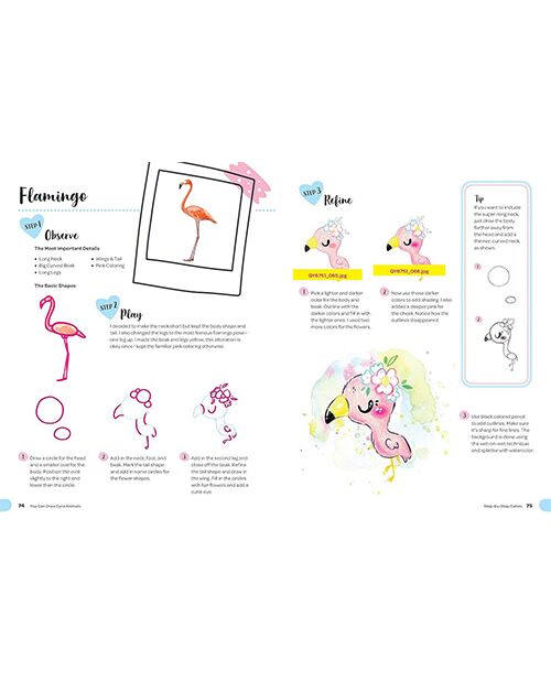 Those techniques are incorporated in creating a diverse array of animals, including a panda, monkey, kangaroo, tiger, cat, goat, hedgehog, owl, crow, fox, deer, snail, butterfly, seal, duck, flamingo, and more. Even complete beginners will feel confident in their skills to draw any animal in a cute style. Explore ways to add vivid color with watercolor, pencils, and markers, to add even more personality and style. Play and experiment for a creatively satisfying experience.
